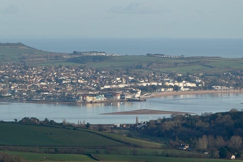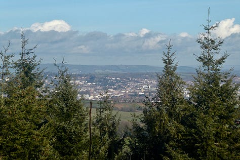 The hills in question - if you live in Exeter - are the Haldon Hills, also referred to as ‘Haldon’. For five years we lived near the Exe, and from just outside our house, you could see the hills and the turreted folly of Haldon Belvedere in the distance, surrounded by forests. On the rare occasion when the rest of the country had snowy weather, the only bit of snow I could see was on these hills. The forests looked dark and mysterious from afar, but we didn’t visit them for many years because there was a pandemic on and we didn’t have a car. They were one of the first places we visited when my husband learned to drive.