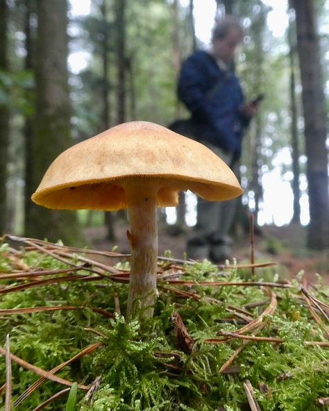 The Haldon Hills are pretty significant in wildlife terms, with Haldon Forest providing a home for various birds of prey, nightjars, and rare butterflies. The conifers also provide a habitat for a fairly common but favourite bird of mine, goldcrests. Goldcrests (along with firecrests) are the smallest British birds, and the best way to identify their presence is note the tiniest movements in the treetops and an extremely high pitched twittering which matches their miniscule scale. The most recent autumn was a good one for spotting fungi, and this merited a trip to Mamhead to spot some in the forest…